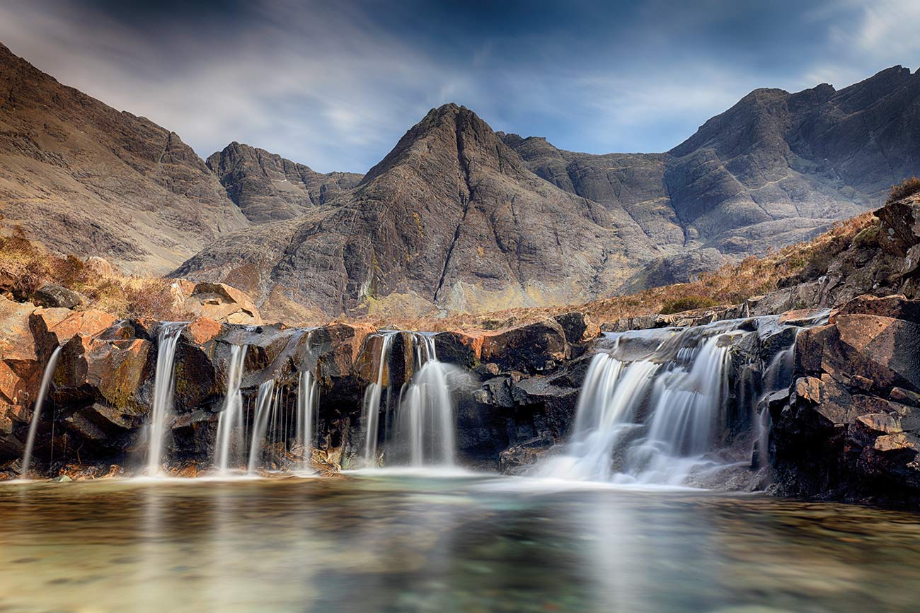 A 45 second long exposure at the Fairy pools on the Isle of Skye, Scotland.