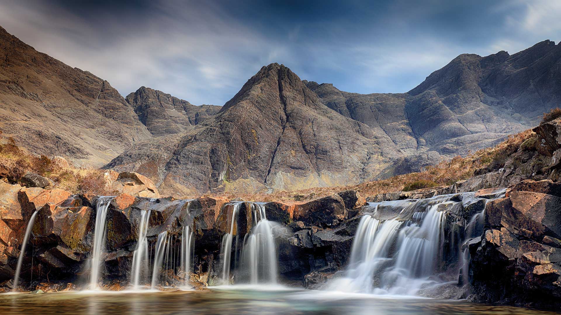 A 45 second long exposure at the Fairy pools on the Isle of Skye, Scotland.