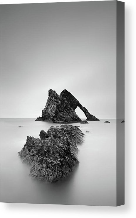 Long exposure black and white photograph of Bow Fiddle Rock at Portknockie, Scotland by Grant Glendinning